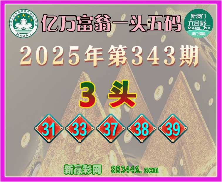 343期: 亿万富翁 🥖一头五码🥖【3头主:31.33.37.38.39】开:38准上榜高手